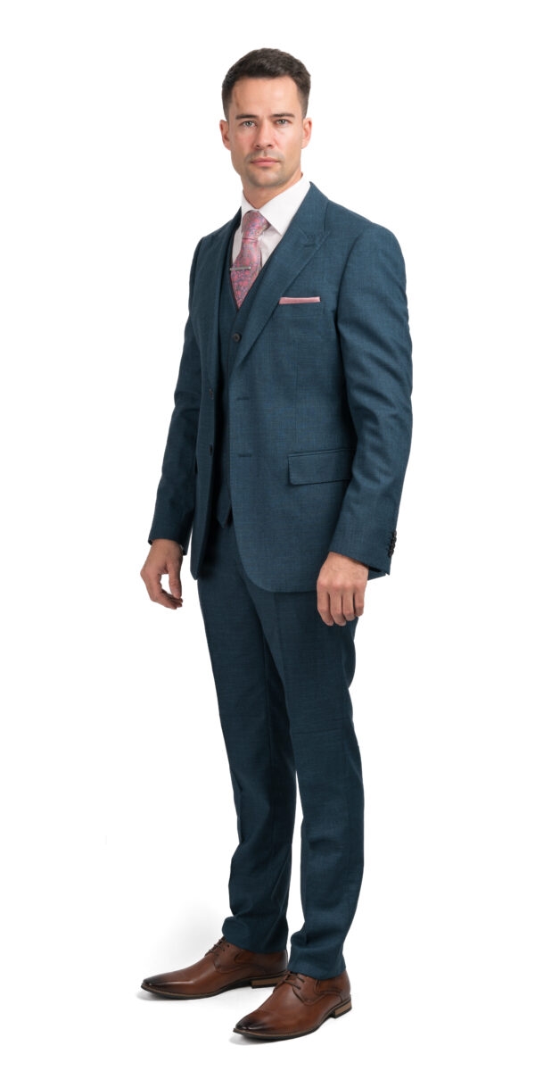 From our slim fit London collection, the Messi boasts our latest fit. It sculpts your body to emphasise broad shoulders and a narrow waist and slim legs. The Messi is a green teal suit, a blend of green and blue, perfect for the gentleman who wants an exceptional suit that is fitted but comfortable. An incredible option for a day at the office, going to a wedding or dressing up for a debs or prom.