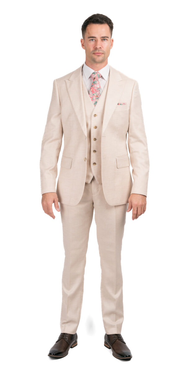 Warm Beige Lightweight 3-Piece Wedding Suit